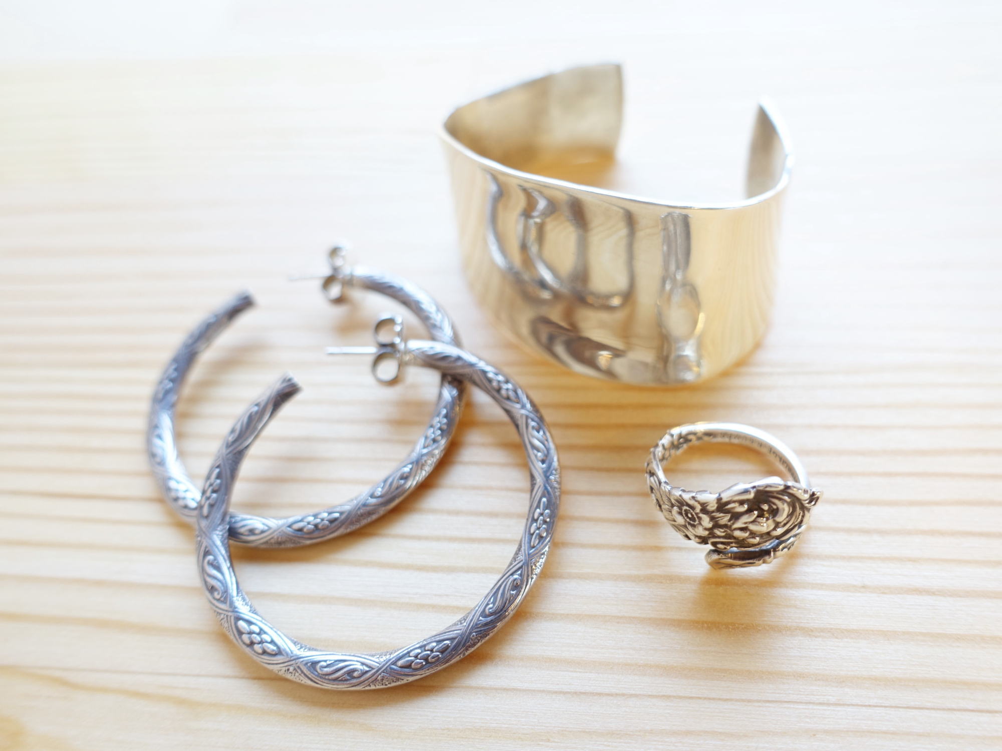 バッグがエコ系カジュアルトートなので、アクセサリーはしっかりと装着~